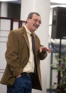 Cutline: Virgil Sheets discusses the findings of the relationships in Terre Haute survey. ISU Photo/Tony Campbell