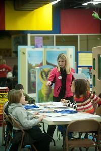 Cutline: Katelynn Moats, ISU sophomore math education major, leads a group at Go Figure, held at the Terre Haute Children's Museum. ISU Photo/Tony Campbell
