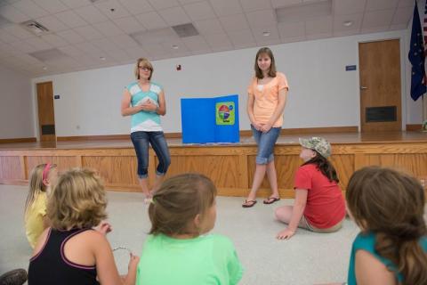 Elementary education majors taught a variety of interactive health lessons to girls in grades 2 through 5 during a series of presentations at the Girl Scout Program Center in Terre Haute\'s Fairbanks Park.